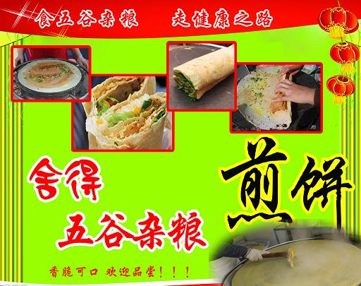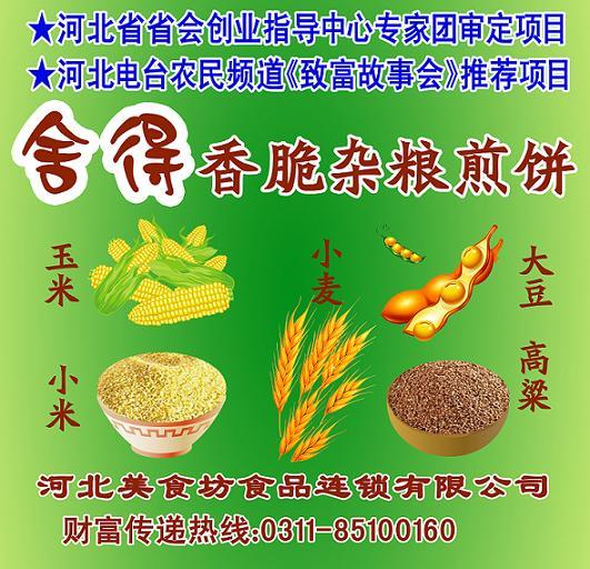 杂粮煎饼简介 为什么五谷杂粮煎饼如此深受广大消费者的喜爱?也是小本创业者的首选呢? 五谷杂粮煎饼独特的风味,风靡老、中、青、少年四个阶段人群;男女老少通吃;